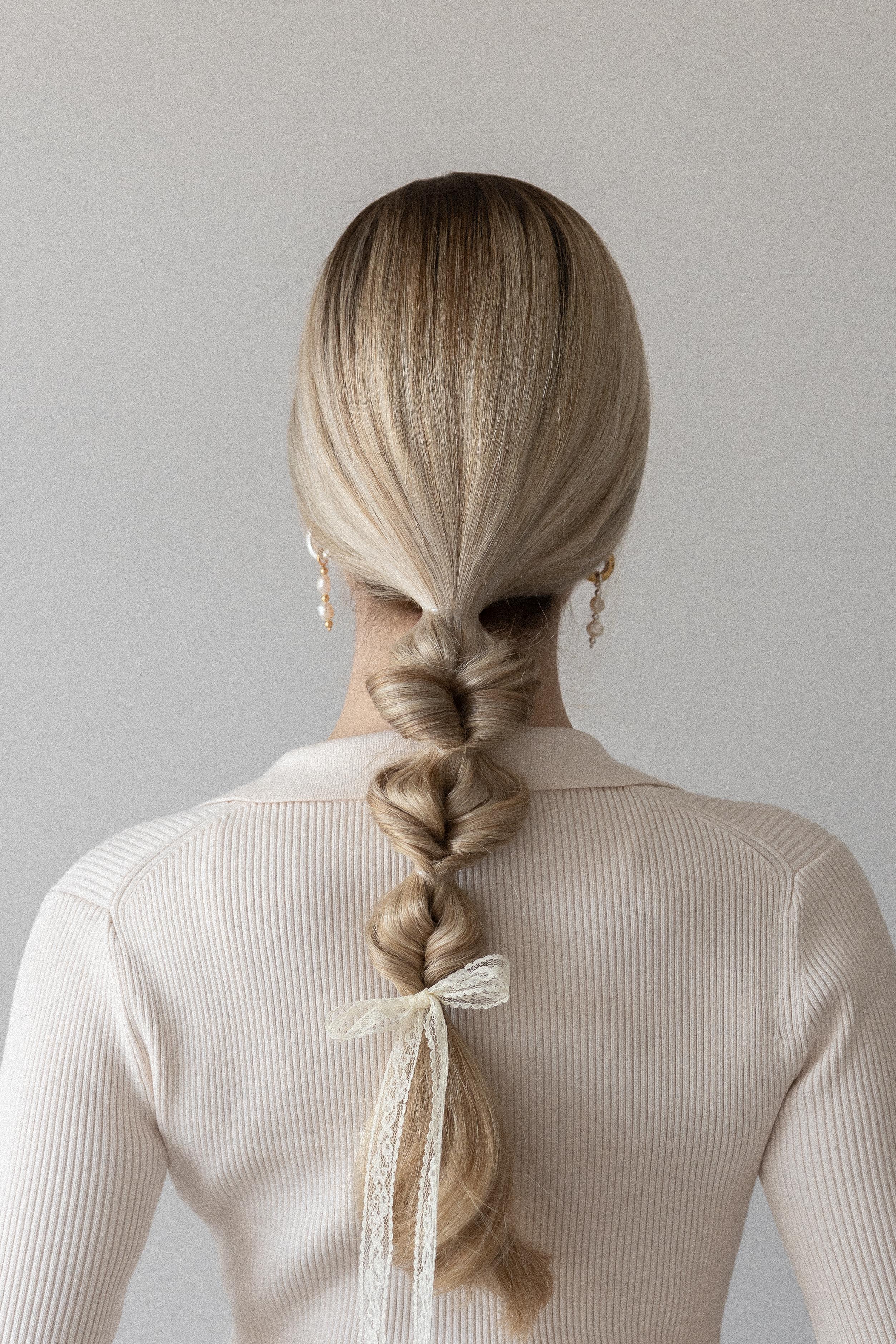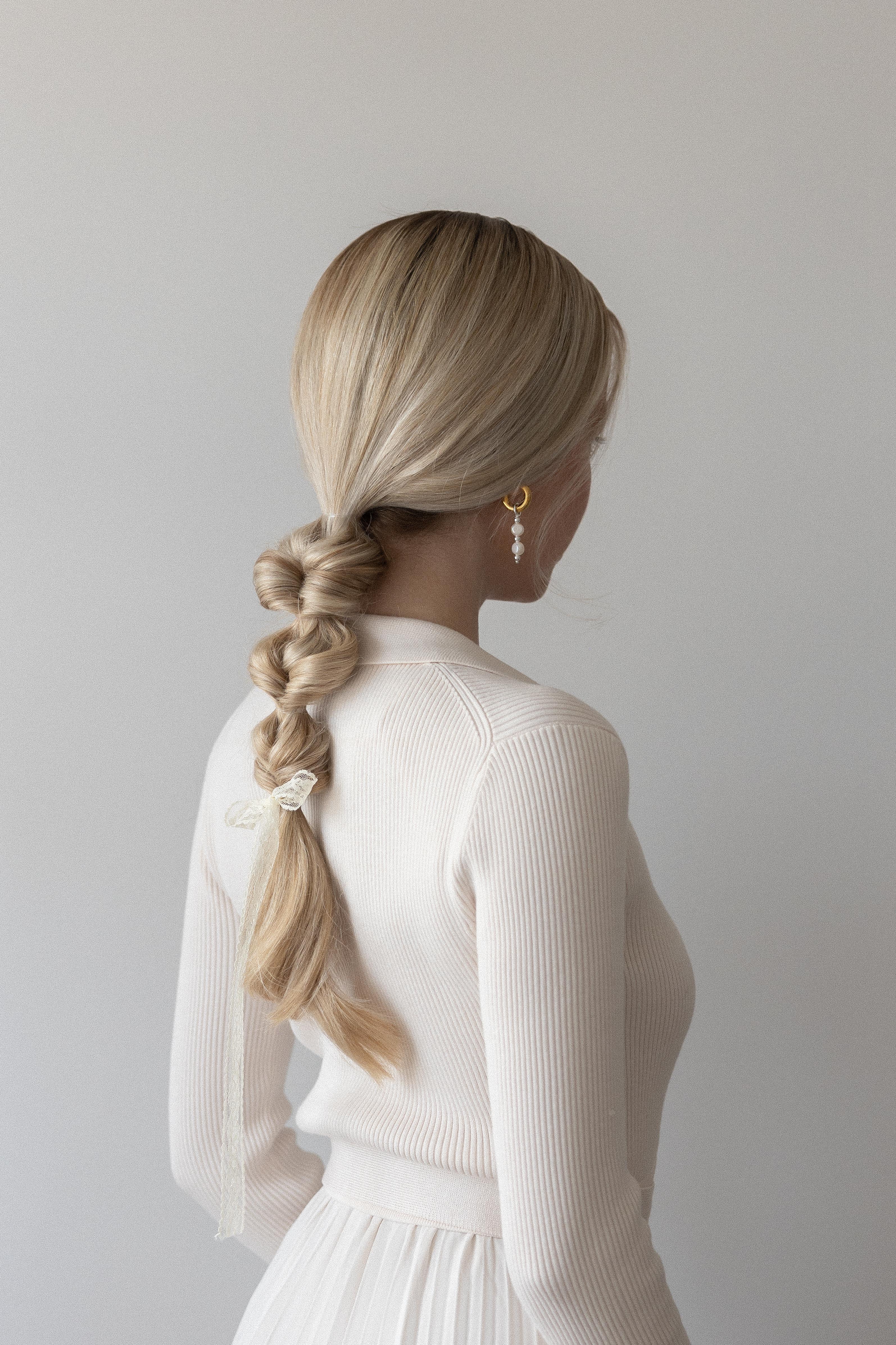 - Begin by gathering your hair into a ponytail wherever you want it to sit and secure it in place.