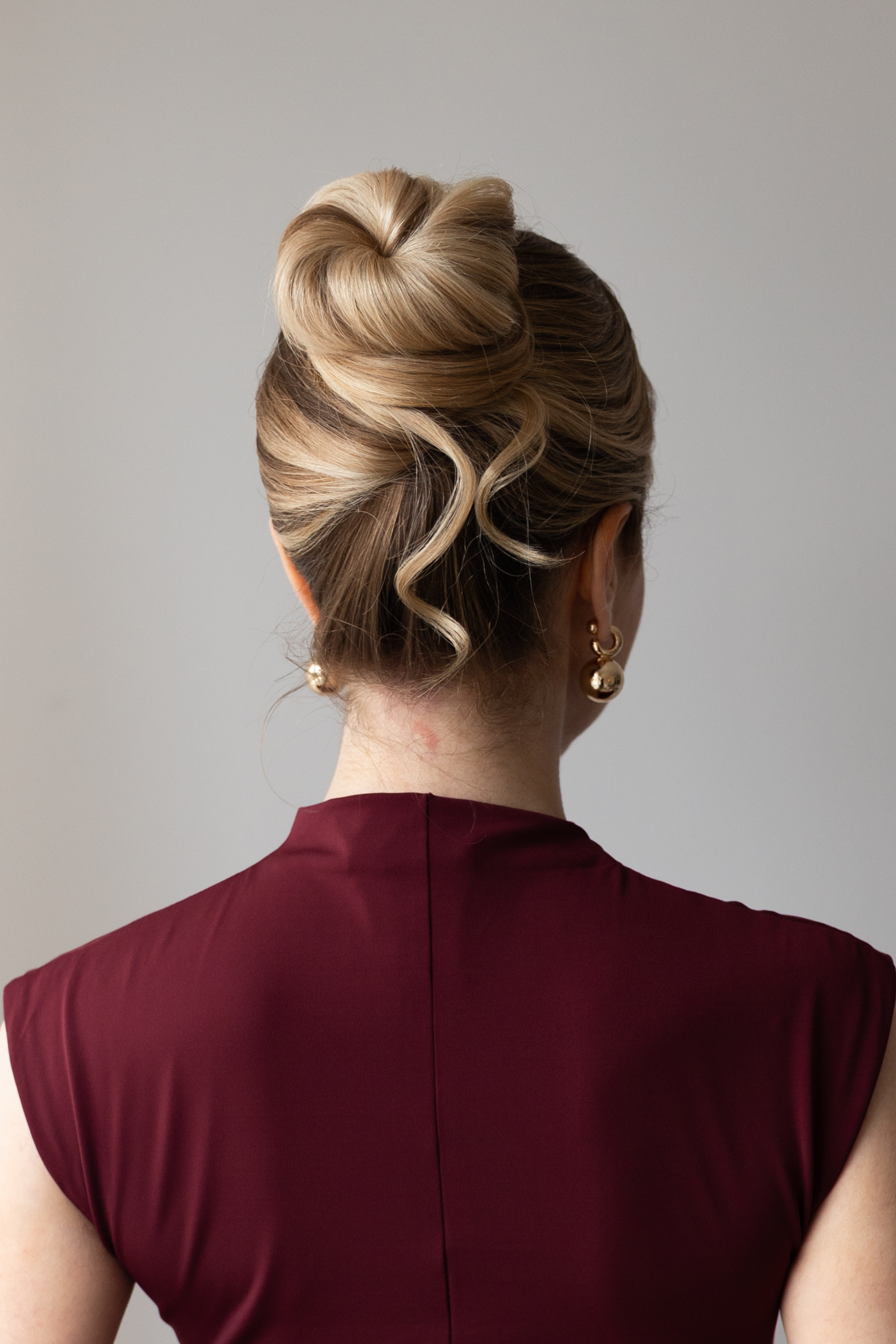 - Curl any ends and secure just under your bun.