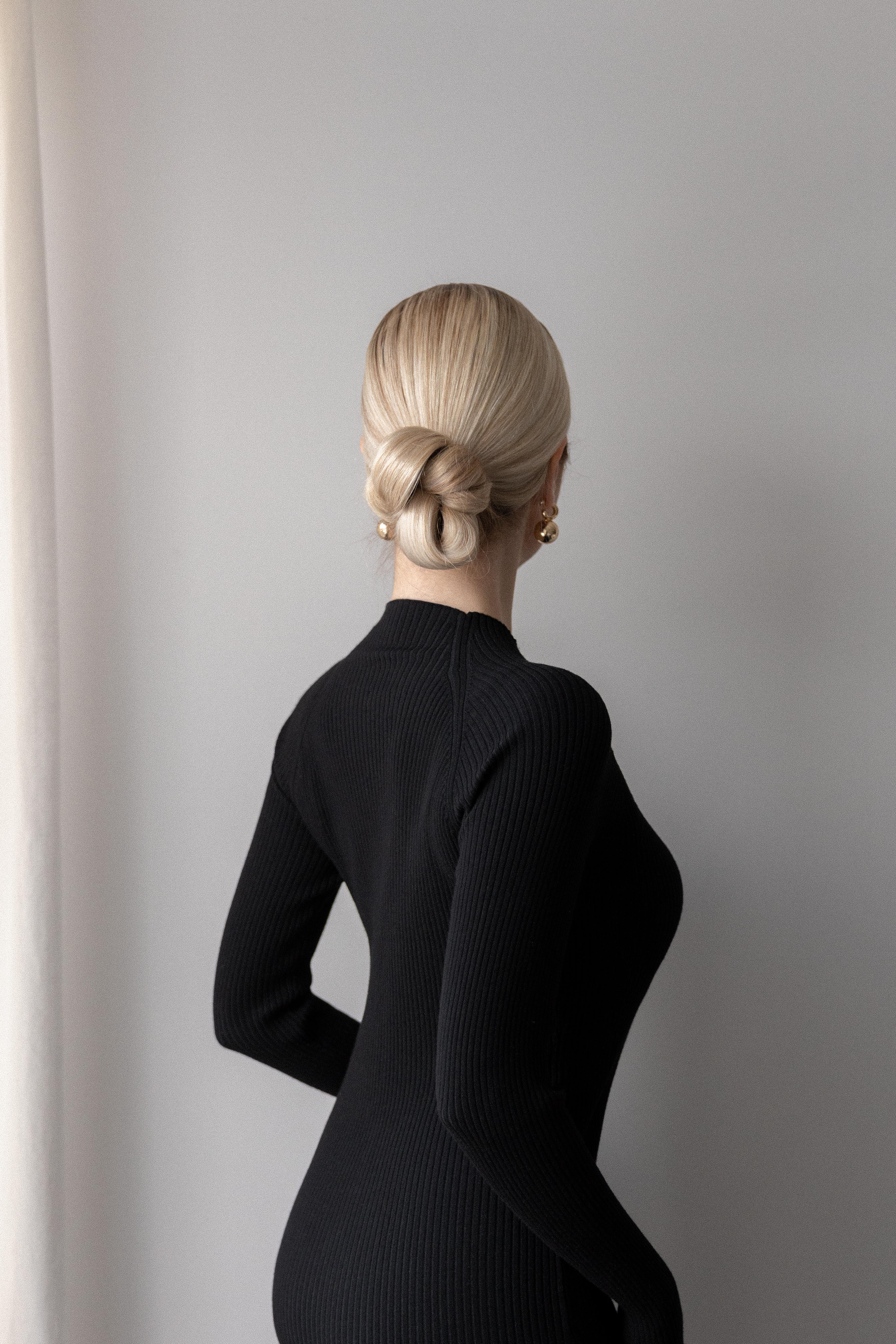 Today’s how to hairstyle is this viral 10 second low bun tutorial! This easy updo hairstyle takes seconds to recreate, and is the perfect wedding hairstyle, prom hairstyle, bridesmaid hairstyle, graduation hairstyle or a summer hairstyle. All you need to recreate this look is a stretchy hair elastic, and if you want to secure this bun a little better, you can use bobby pins. This hairstyle is perfect for anyone with medium hair and long hair, but if you have short hair, you can still recreate this hairstyle with hair extensions.